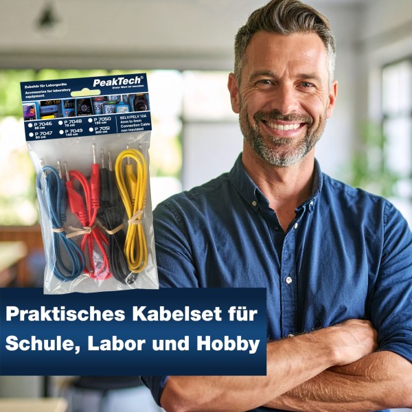 PeakTech 7050 - Set of 4 x 150 cm Cables with 4 mm Banana Plugs for Laboratory or Experimental Use