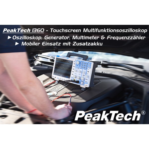 PeakTech 1360 - Digital Oscilloscope 12 bits, Touchscreen 8”, 2 Channels 100MHz 1GS/s, Multimeter 3¾ digits,Waveform Gener.25MHz
