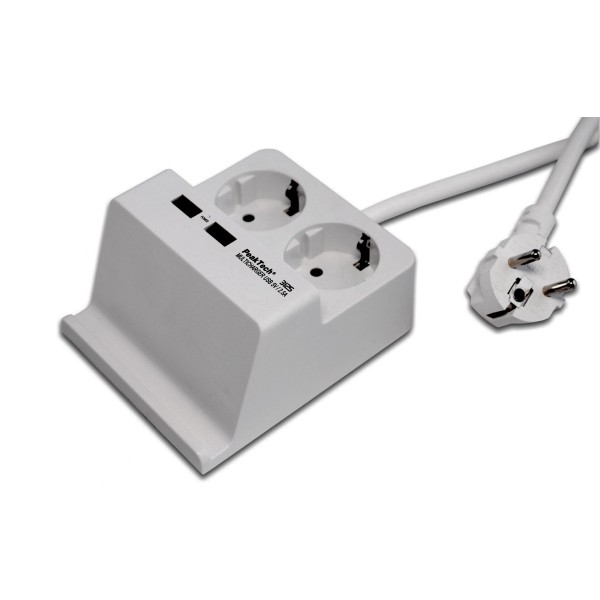 This handy battery charger provides two USB charging ports with a maximum charging current of 2.5 A and two child-proof, shockproof sockets.