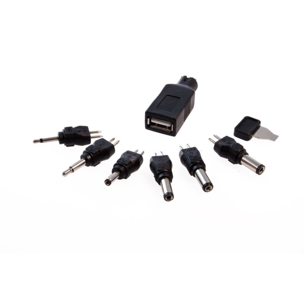 | Output adapters | USB plug, two jack plugs and four barrel plugs |