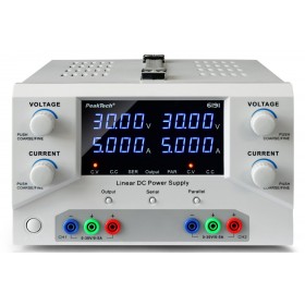 PeakTech 6193 - Alimentatore da Laboratorio CC, 2x 0-30V 0-5A, 5V 1A, Controllato via USB, Strumenti Digitali per V e I