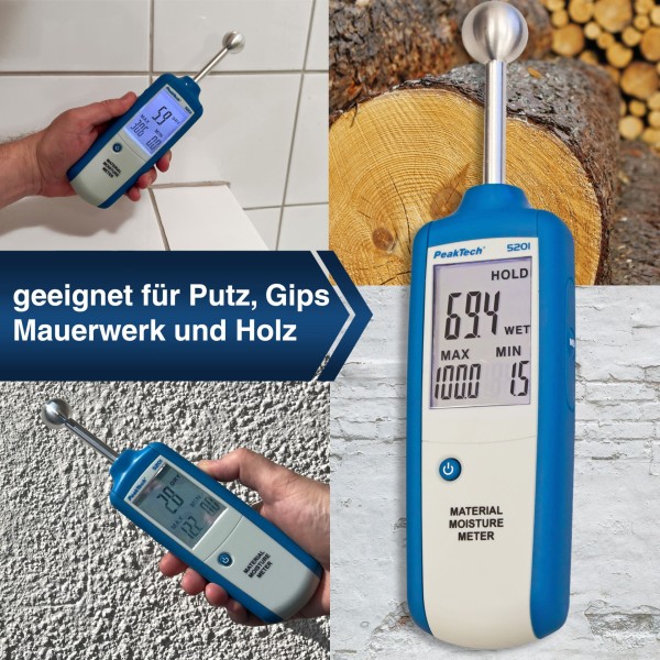 PeakTech 5201 - Misuratore di Umidità dei Materiali ad Alta Frequenza Senza Contatto
