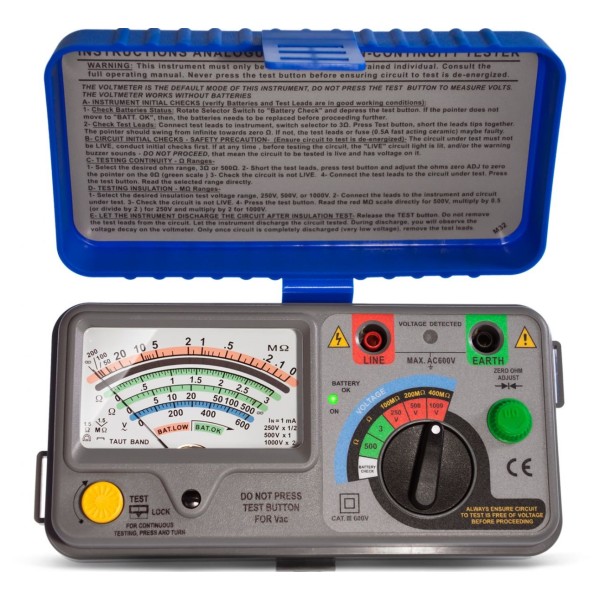 Misuratore di Isolamento con strumento Analogico a Bobina Mobile @ 250/500/1000 V CC, 400 MΩ