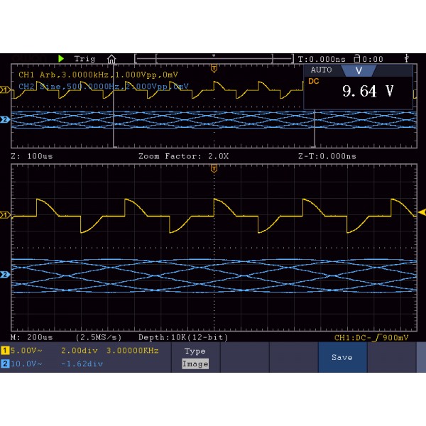 Oscilloscopio Digitale 12 bit, Touchscreen 8", 2 Canali 100 MHz 1 GS/s totali, Multimetro Integrato 3 ¾ digit, Generatore di Forme d'Onda Integrato 25 MHz.