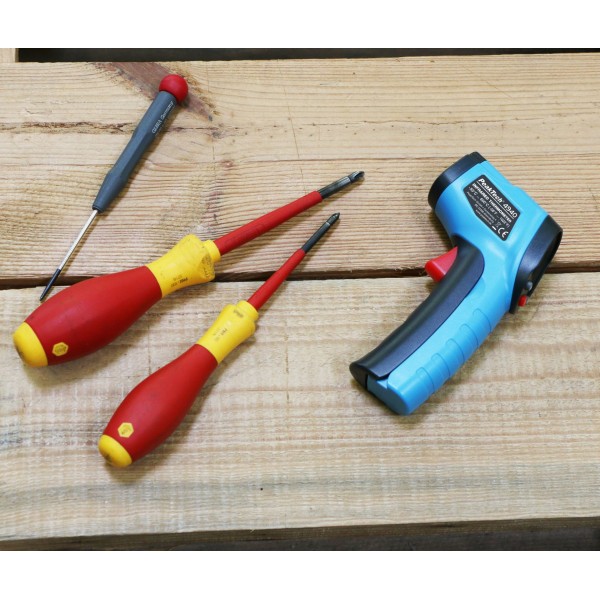 Pratico termometro a infrarossi con un eccellente rapporto qualità-prezzo che misura le temperature superficiali in modo rapido, semplice e preciso utilizzando un puntatore laser integrato.